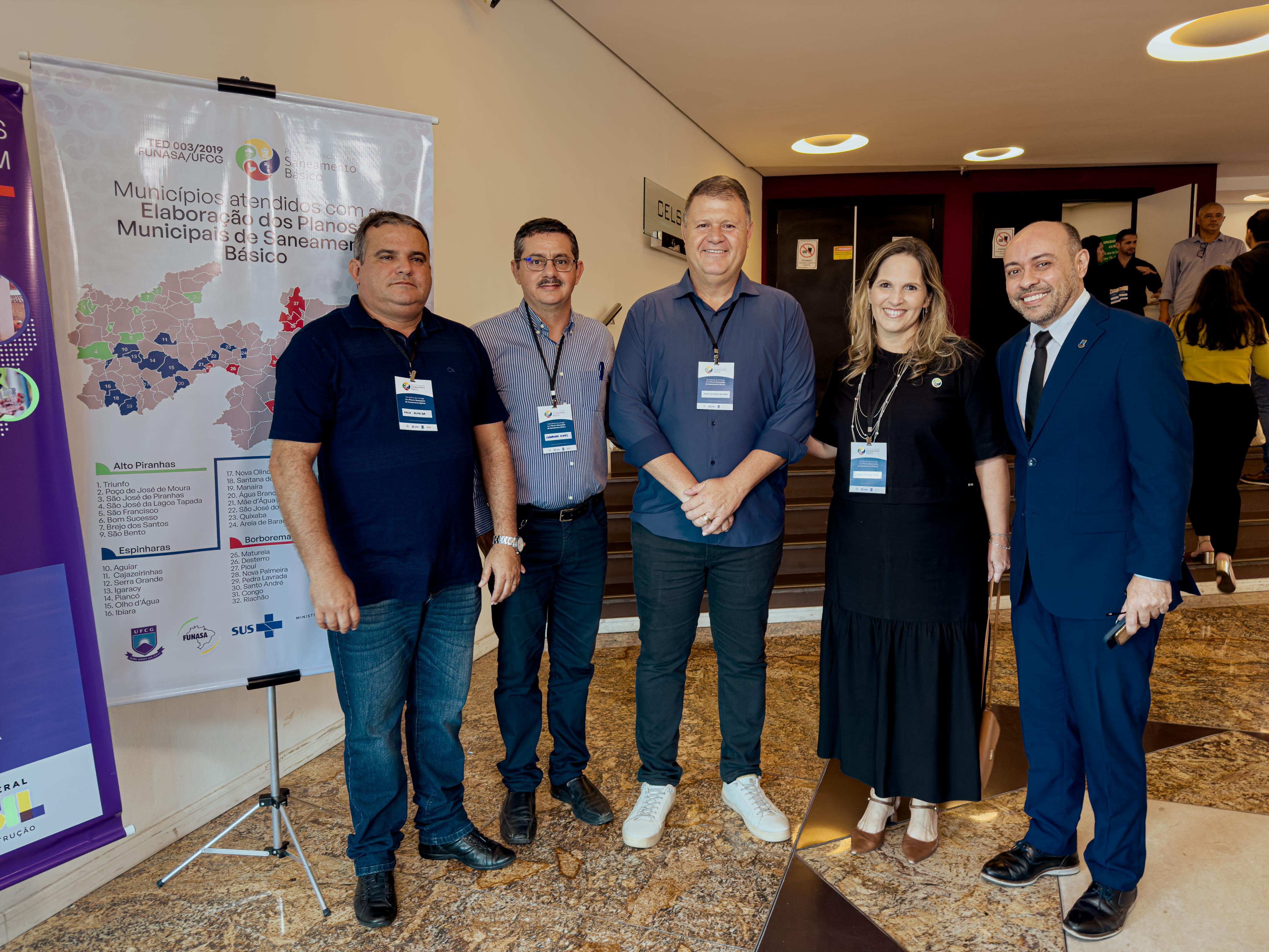 A solenidade contou com as presenças da professora Dra. Patrícia Hermínio (UFCG), coordenadora do Planos de Saneamento; de Josiclene Moura Leite, coordenadora do núcleo Intersetorial de Cooperação técnica da Funasa; de Osvaldo Balduino Guedes Filho, superintendente estadual interino da Funasa na Paraíba; do reitor da UFCG, Antônio Fernandes; e de Alexandre Ribeiro Motta, presidente interino da Funasa.