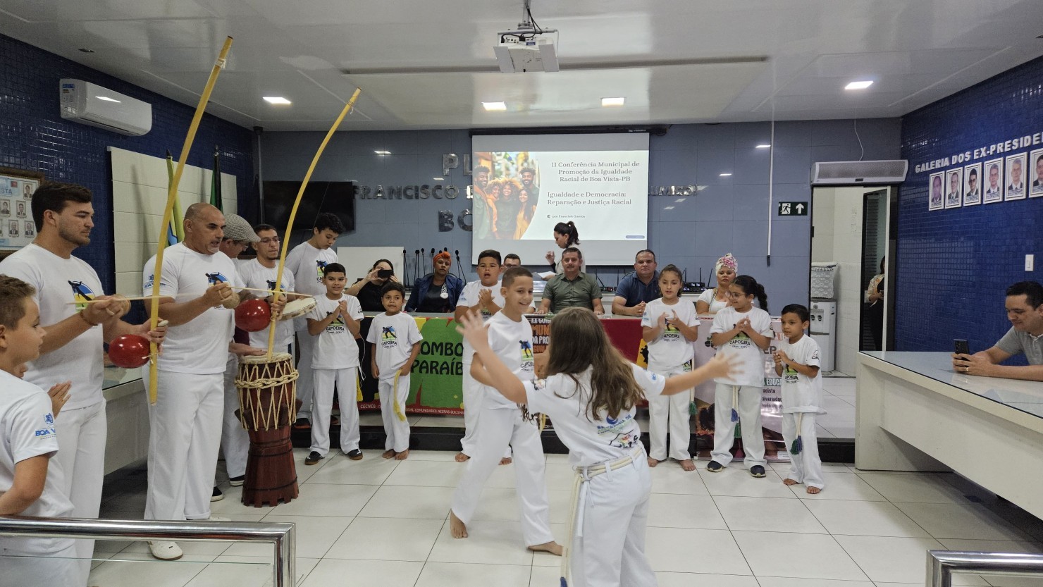 Durante o evento, também foi apresentada uma roda de capoeira, valorizando a ancestralidade africana e promovendo um momento de celebração da cultura negra.
