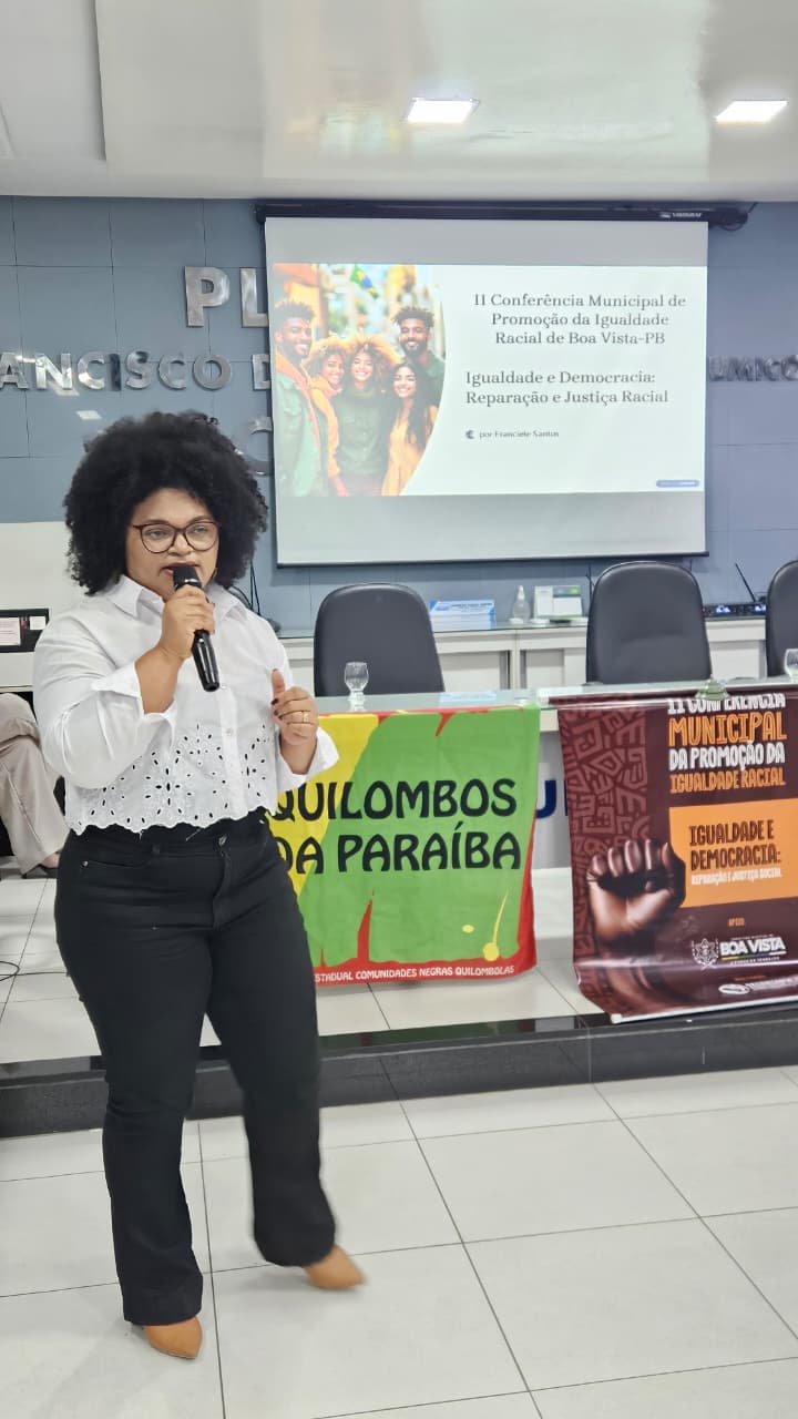 A conferência teve como tema central "Igualdade e Democracia: Reparação e Justiça Racial" e como palestrante, a doutoranda em Serviço Social, Franciele Santos, pesquisadora da questão racial e suas interseccionalidades. Em sua fala, Franciele destacou a importância da reparação histórica e da construção de políticas públicas que combatam o racismo estrutural.