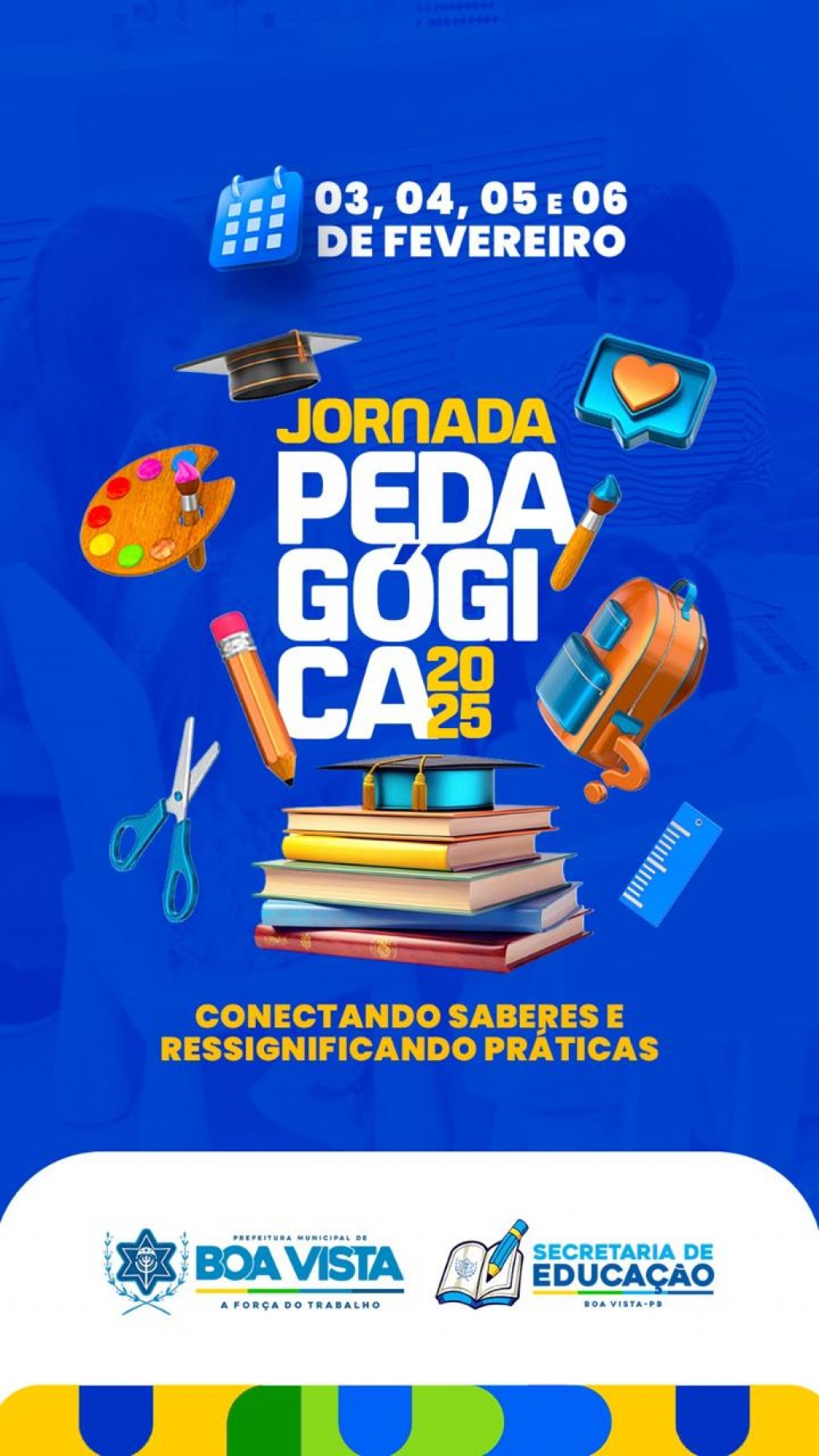 Com o tema "Conectando Saberes e Ressignificando Práticas", a Jornada Pedagógica tem como objetivo dar protagonismo aos docentes, para que em conjunto com suas equipes, definam as melhores estratégias pedagógicas. O evento se constitui num espaço de discussão, troca de experiências e organização das práticas educacionais, com foco em aprimorar a qualidade do ensino e combater a evasão escolar.